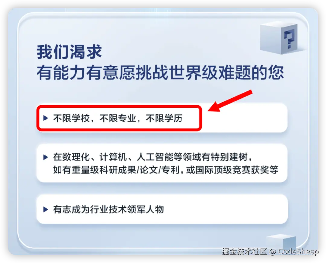 但是在华为「天才少年计划」这里,学历就不是一项硬性的条件要求了,在这个项目的招聘细则里明确写了:不限学校,不限专业,不限学历。