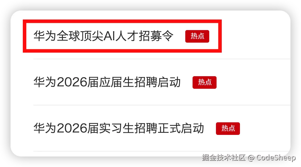 那除了这个最顶级的华为「天才少年计划」之外,就在最近,华为在 AI 人工智能这一块,又单独启动了一项人才招聘计划,那就是:
