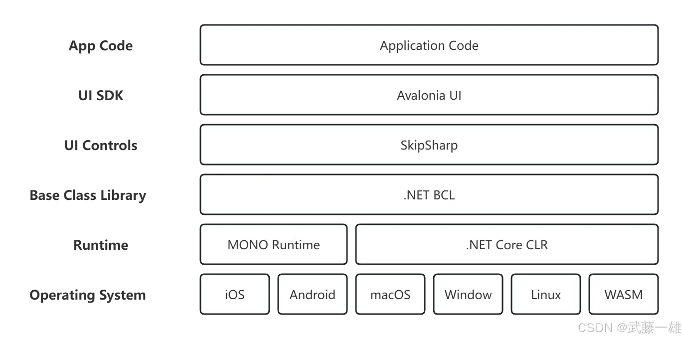 - Avalonia: 使用自绘引擎,抽象了平台细节,以实现对 Windows, macOS, Linux, 甚至 Web (WASM) 和移动端的支持。