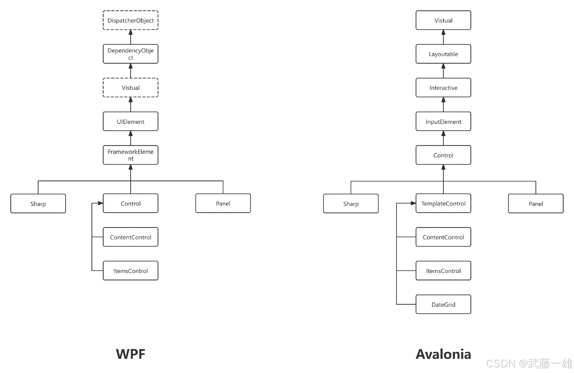- WPF中的UIElement和FrameworkElement是非模板控件的基类,大致对应于Avalonia中的Control类。