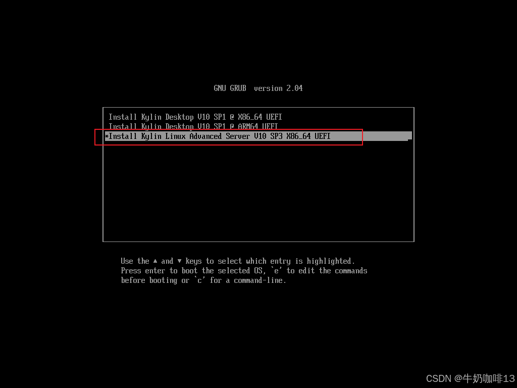 menuentry 'Install Kylin Linux Advanced Server V10 SP3 X86_64 UEFI' --class red --class gnu-linux --class gnu --class os {