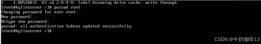 #3-进入单用户模式的命令行界面后,输入passwd root,按提示输入两次新的 root 密码(无需输入原密码),完成密码设置。