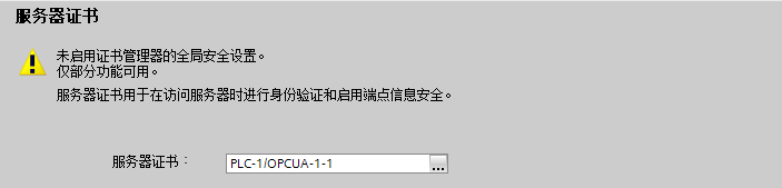 | 激活 OPC UA 服务器并确认安全提示后,STEP 7 会自动为服务器生成自签署证书,用户也可以生成由证书颁发机构签名的CA证书;
