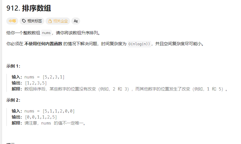 根据题目要求我们要把一个数组变成一个升序的数组,而且时间复杂度为:O(n log( n )) ,这里我们使用快排来解决这道题,不懂快排的可以看这篇博客: