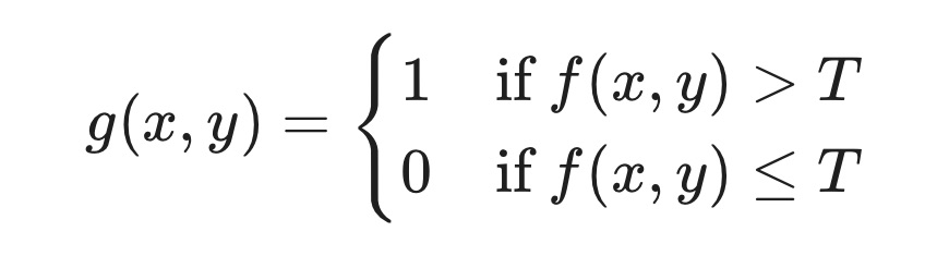 原理:根据图像的灰度级设定一个或多个阈值T,将像素划分为不同的区域。例如:
