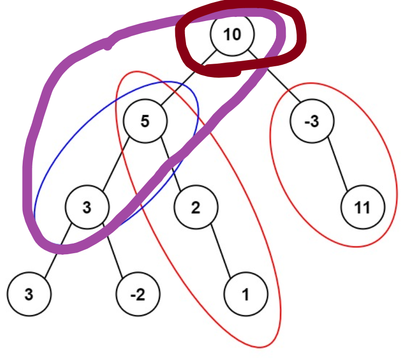 ret = Math.max(ret, root.val+maxL+maxR); // 当前的最大路径和,与当前子树的最大路径和,比较