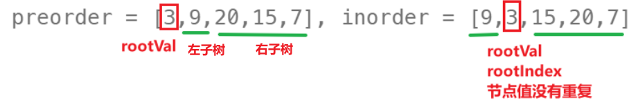 int rootVal = preorder[preStart]; // 前序序列的第一个,是根节点