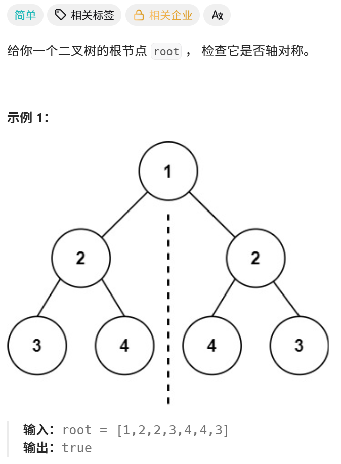 // 左根的左子树、右根的右子树对称,且左根的右子树、右根的左子树对称,才对称