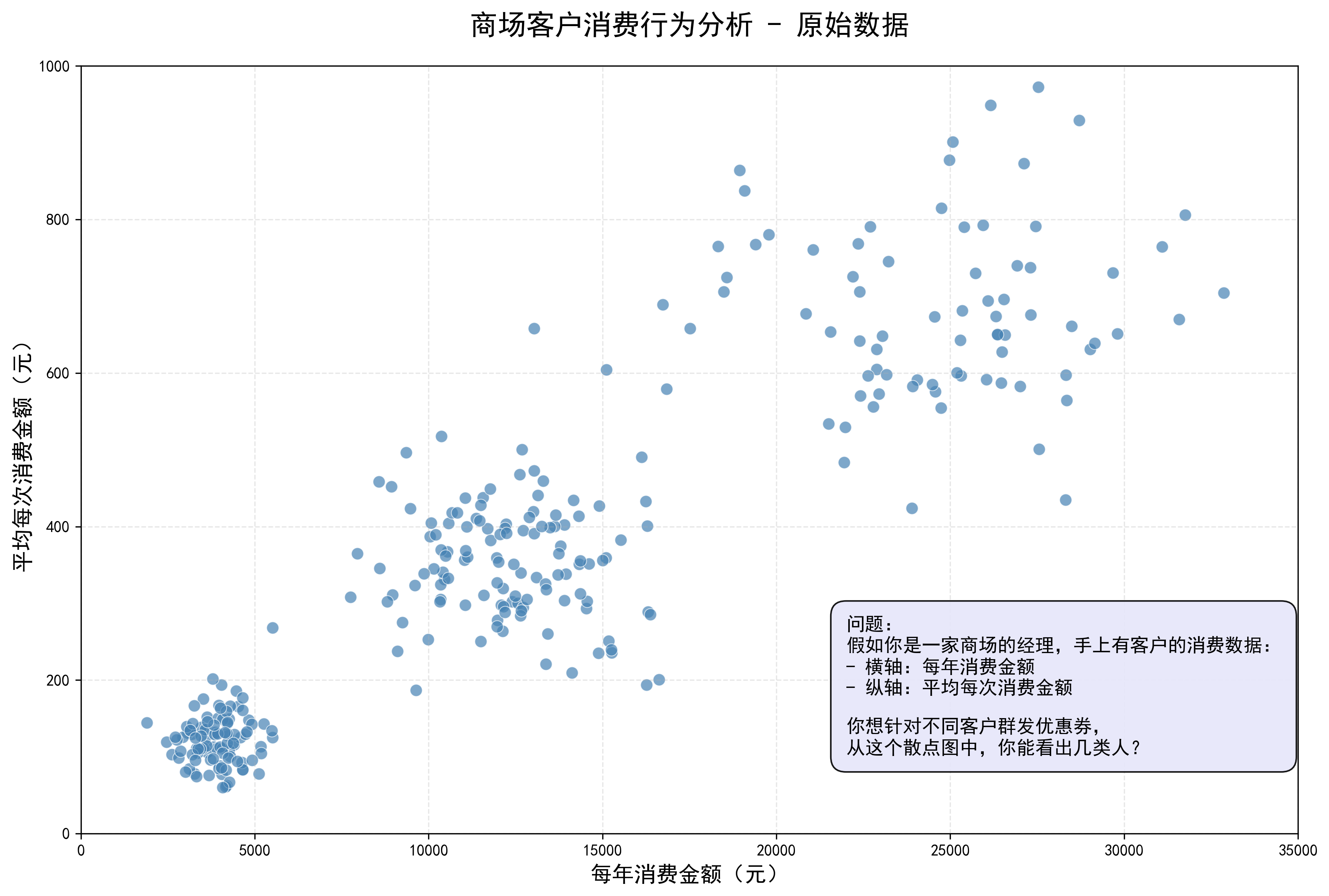 这本质上就是根据"相似性"进行"聚类"------我们今天要学的,就是让计算机自动完成这件事的方法。