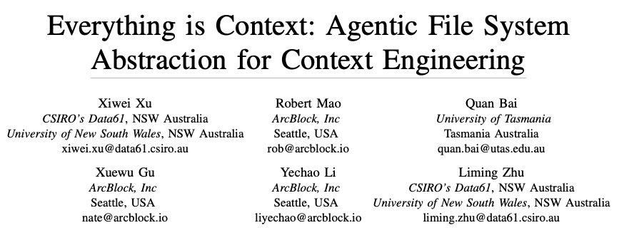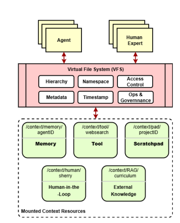 这篇来自 CSIRO 和澳大利亚新南威尔士大学的论文,提出了一个非常有意思的解决方案:把 Unix 系统"一切皆文件"的哲学思想应用到 智能体 的上下文管理中。什么意思呢?就像你的电脑用文件系统来组织文档、照片、程序一样,这篇论文认为 智能体 的记忆、工具、知识库、人类输入等各种"上下文资源",也应该用统一的文件系统来管理。