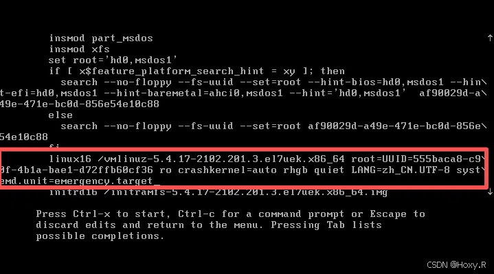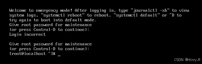 按 Ctrl + X 启动,就会进入 emergency 模式,输入root密码登录