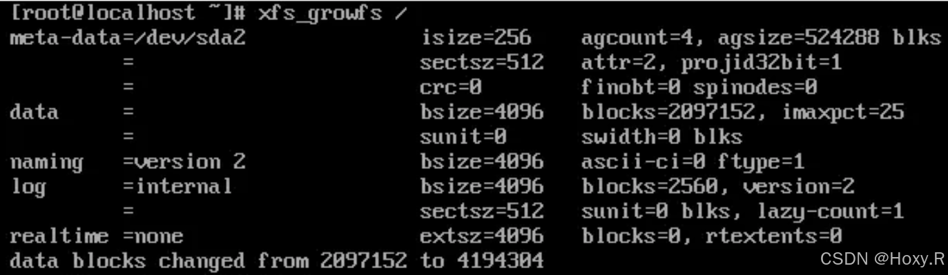 表示 XFS 把数据区从原来的大小扩展到了更大的区间。