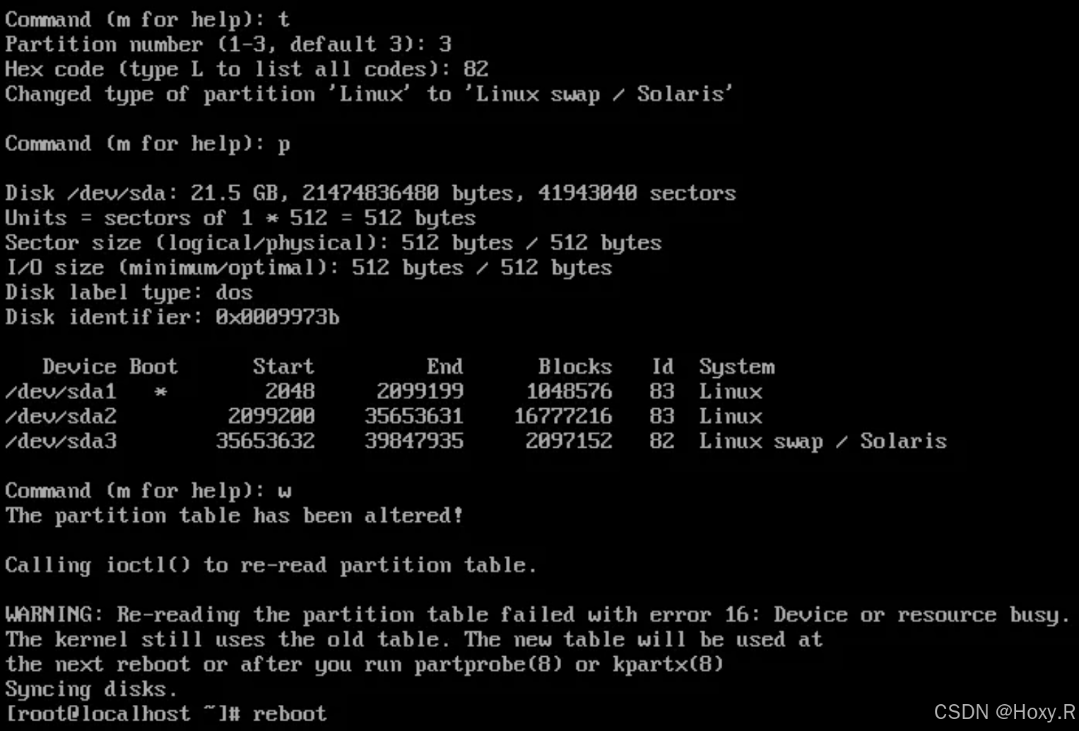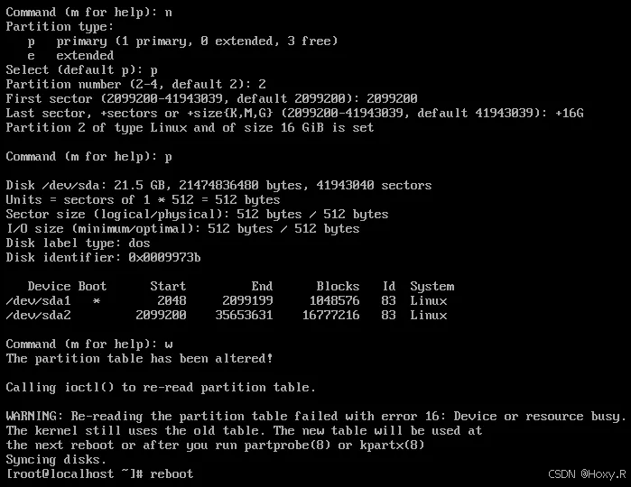 WARNING: Re-reading the partition table failed with error 16: Device or resource busy.