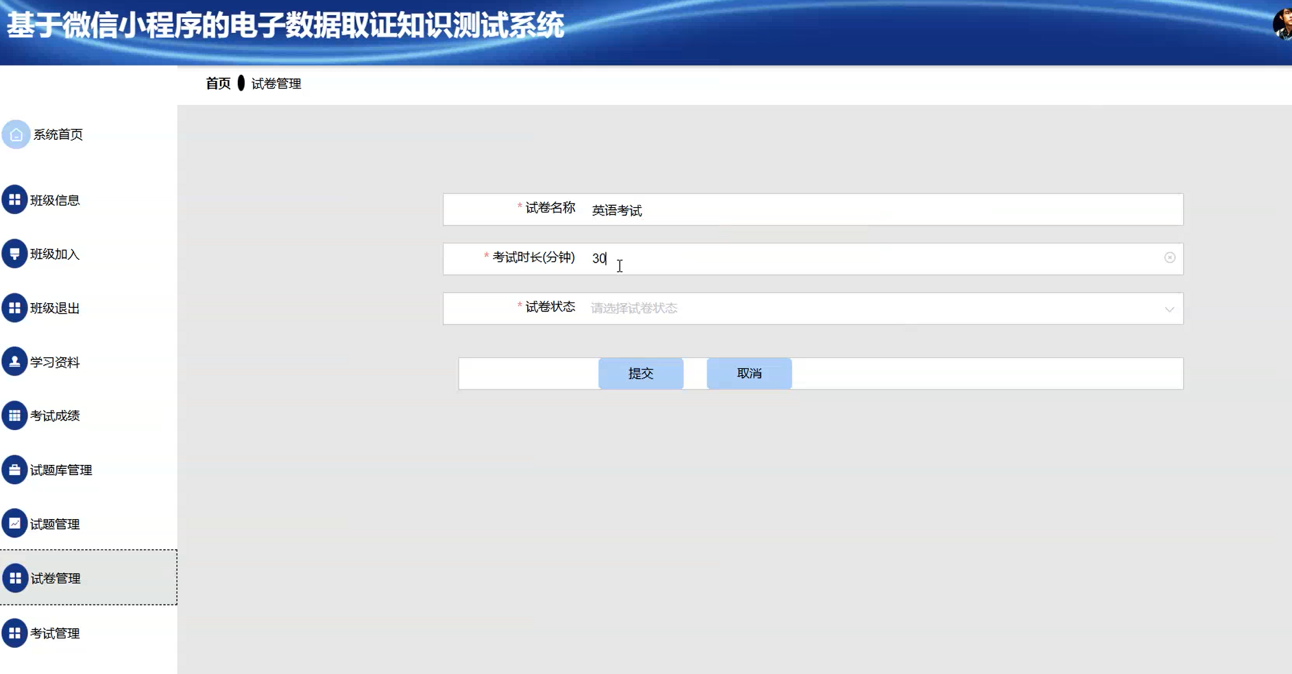 试卷管理页面