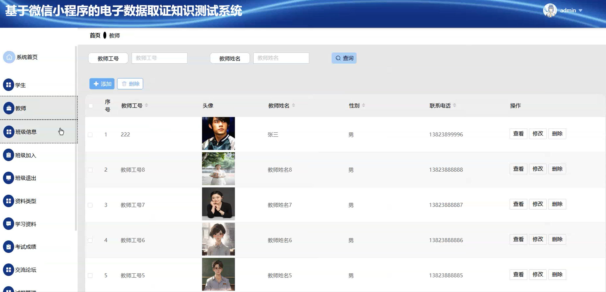 教师管理页面