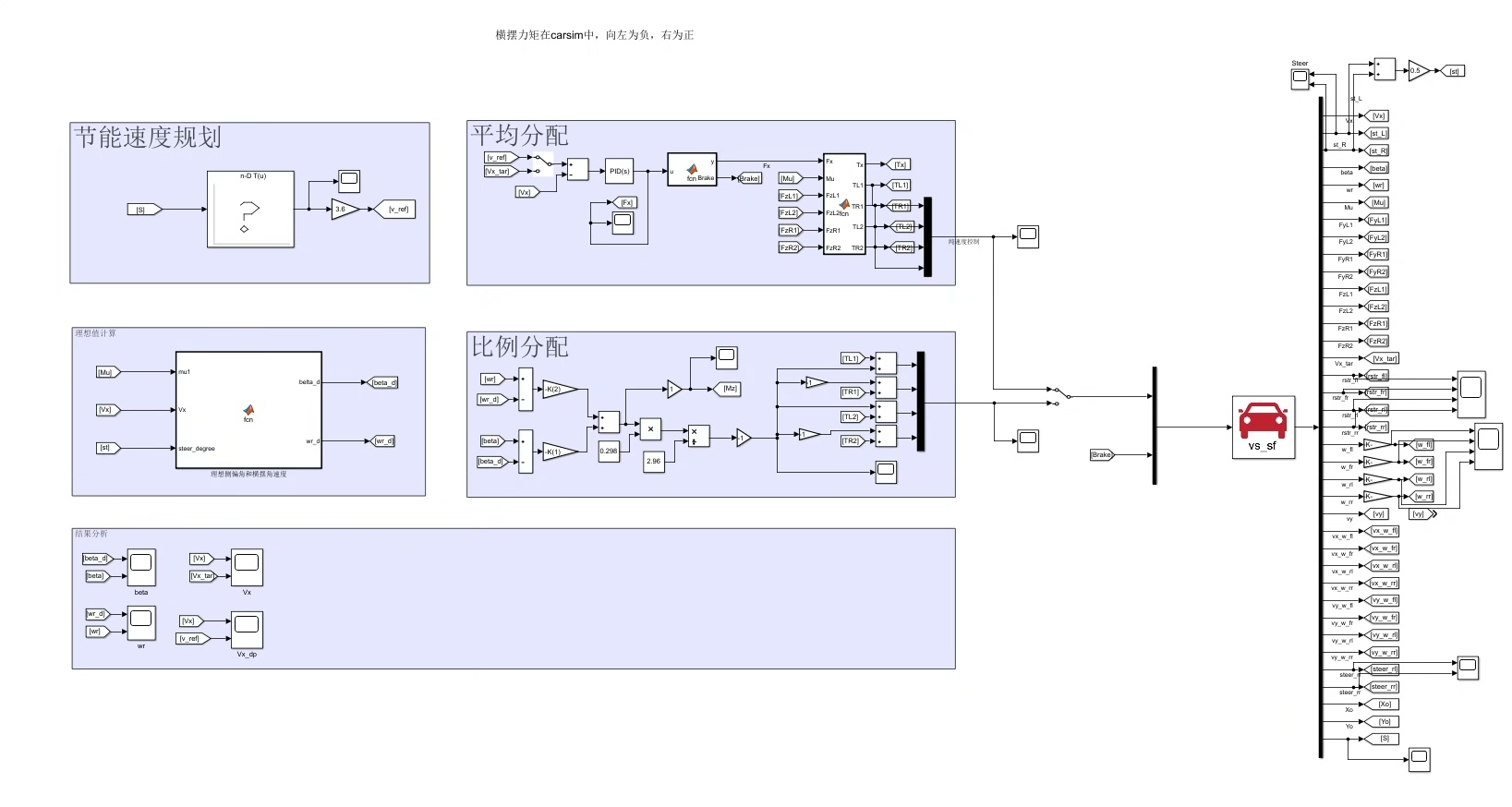 当算法计算出最优速度轨迹后,与Carsim的对接才是真正的战场。我们在Simulink里搭建了这样的通信桥梁: