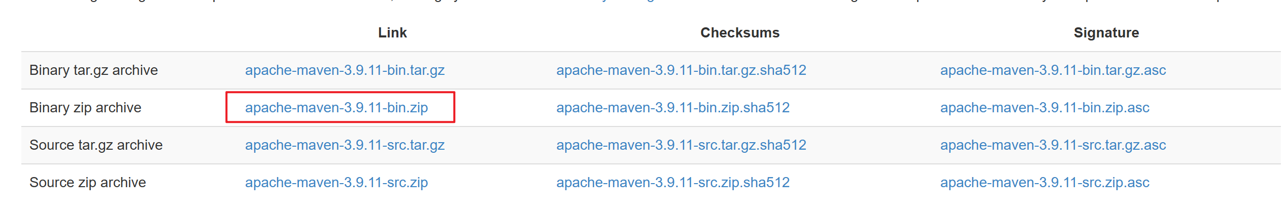 访问 Apache Maven 官网,选择最新版本的二进制压缩包(如 apache-maven-3.9.11-bin.zip)下载。