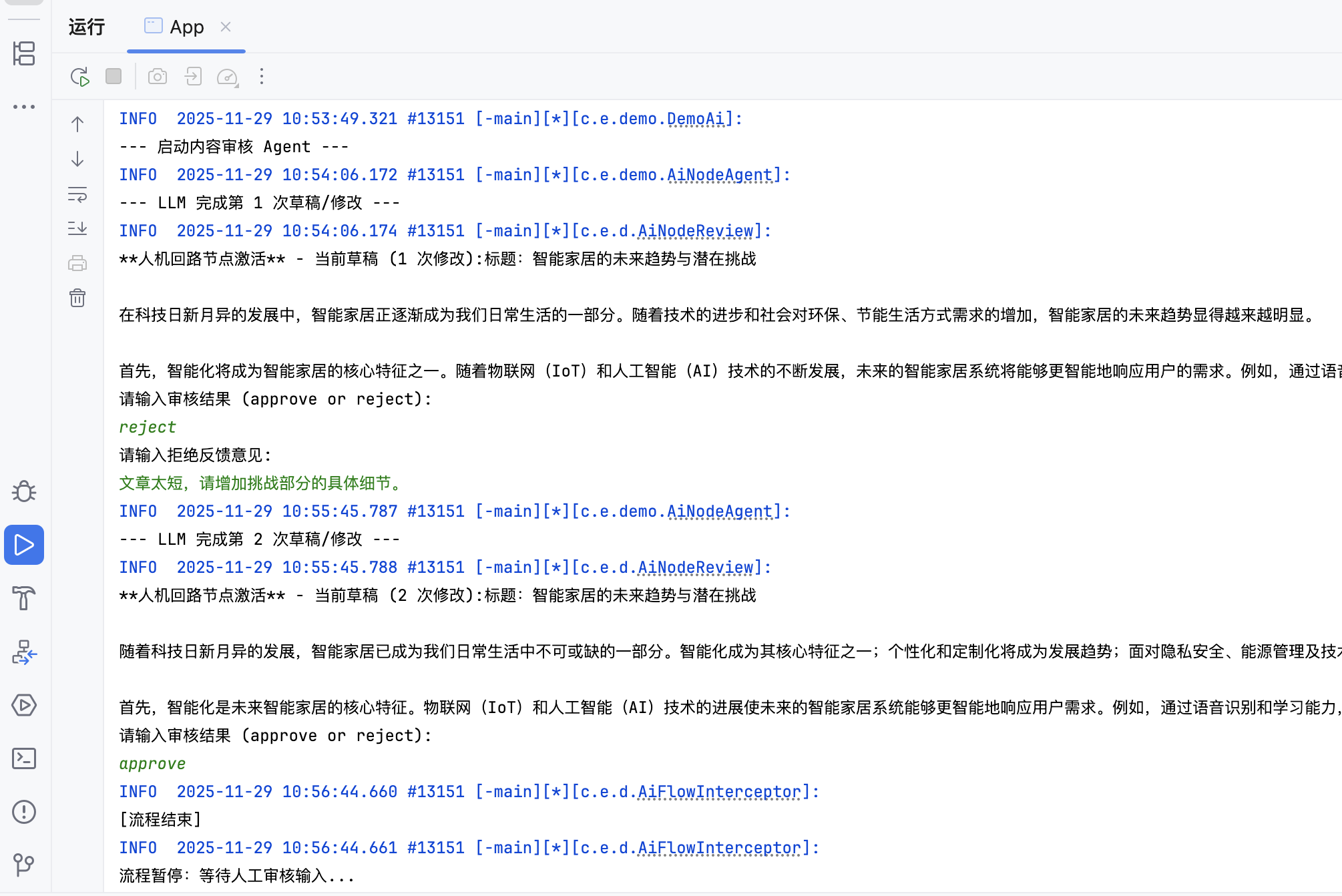 log.info("--- 启动内容审核 Agent ---");