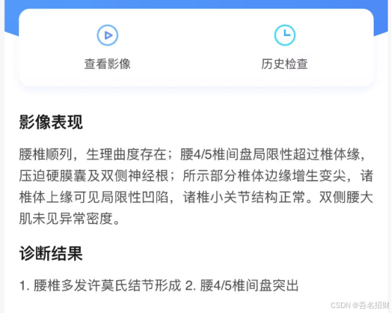 周末的时候我去了趟医院,挂的腰腿疼门诊,先是问我屁股腿疼不有没有啥疼痛感,我说没有,然后医生让我简单的做了几个动作,让我抬高左腿,问我抬起的过程中有没有疼痛加重呀,当时不理解,现在明白了这个是检测腰突症的常见动作之一,我的屁股腿还是没啥疼痛感,只有腰部的疼痛,医生便简单判断我是腰肌劳损了,给我开了三次的理疗按摩。