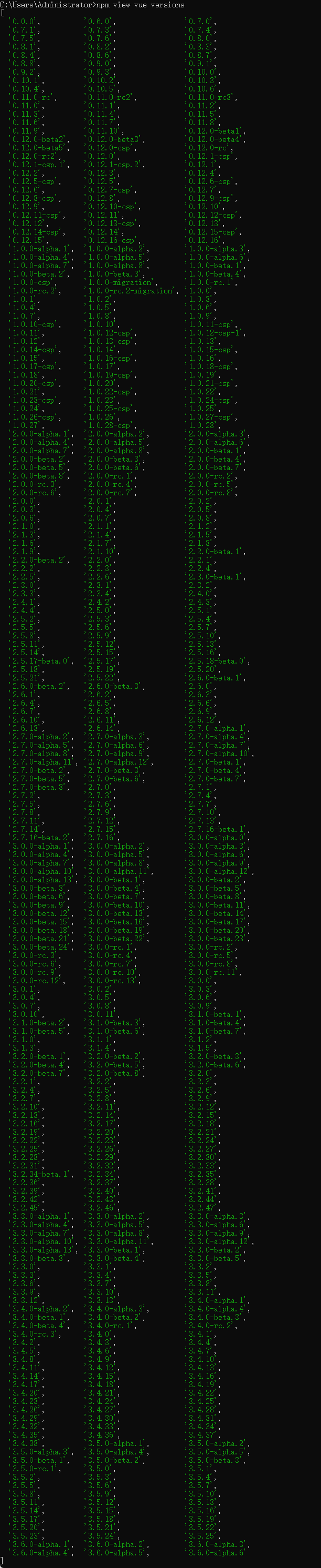 此命令用于查看你当前项目安装的package版本是多少,它会列出安装的所有的版本,此处我们以vue包为例,执行如下命令