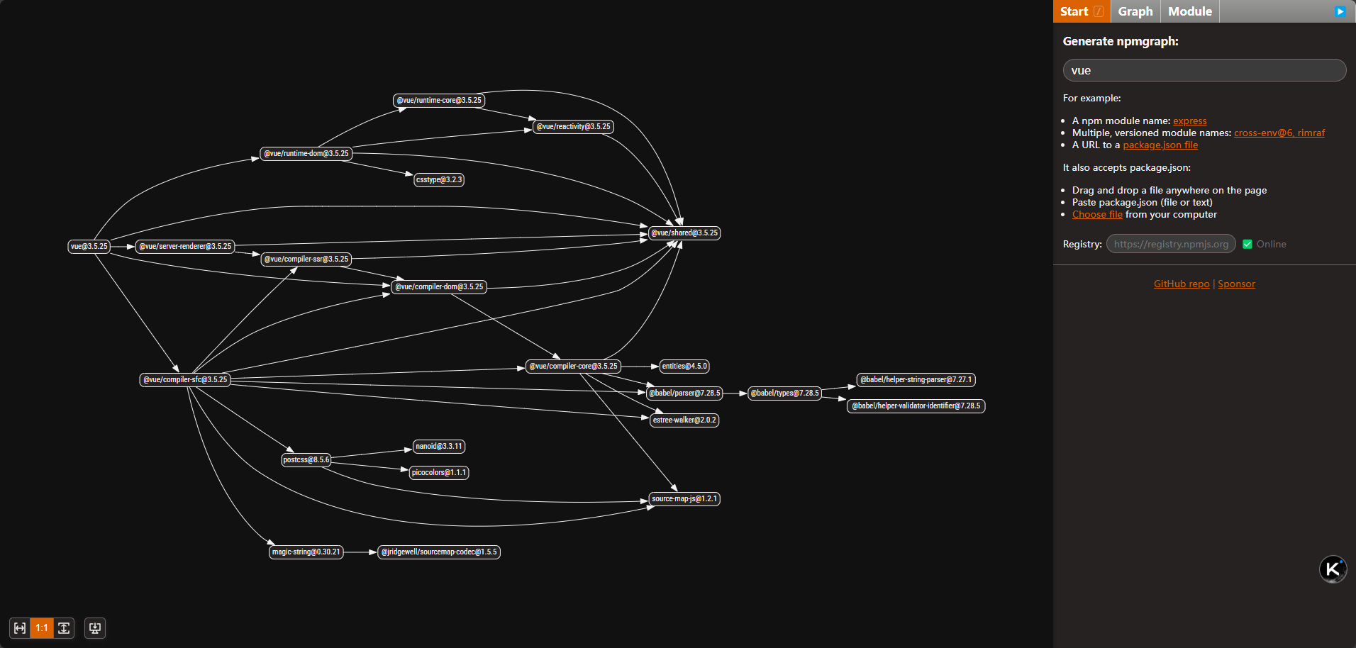 它有在线版本:++https://npmgraph.js.org/++使用体验如下: