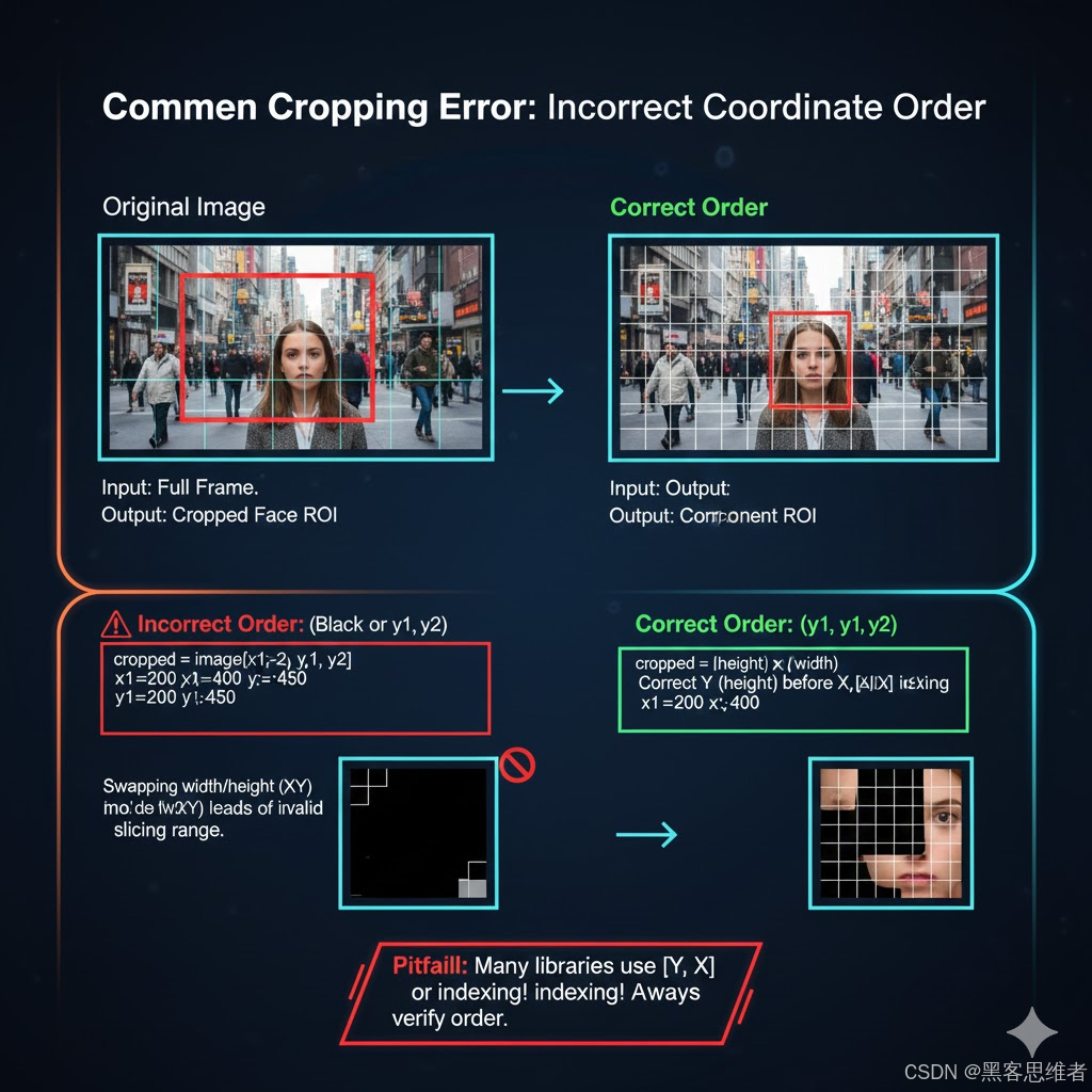表现症状:裁剪结果为黑框、空白图像,或报错"索引越界";