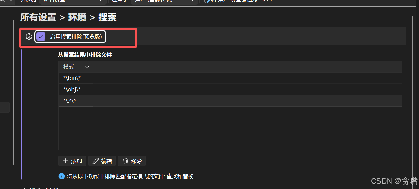 有一项启用搜索排除(预览版)