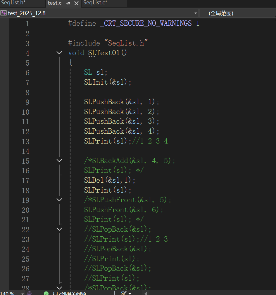 这是我们在头文件中需要去声明的,接下来我们到SeqList.c文件中去完成代码的处理: