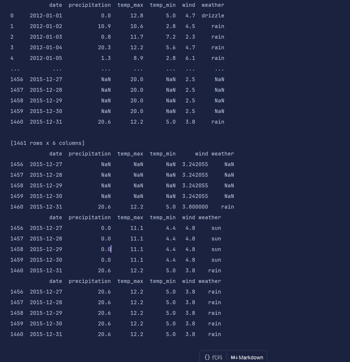 print(df.fillna(df[['wind']].mean()).tail()) # 使用统计值来填充