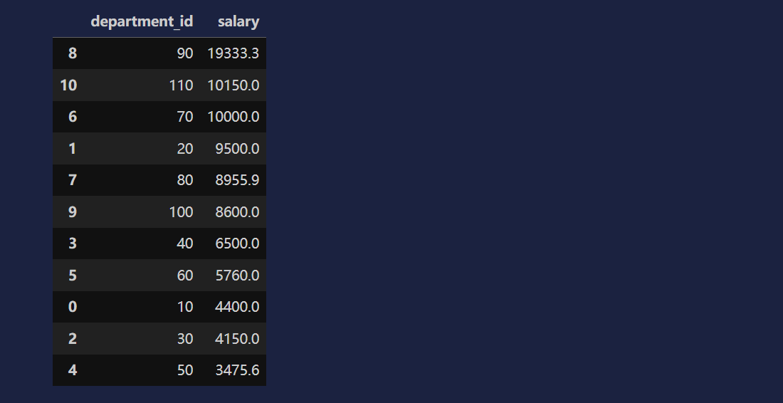 # 第四步:按薪资从高到低排序(看哪个部门平均薪资最高)