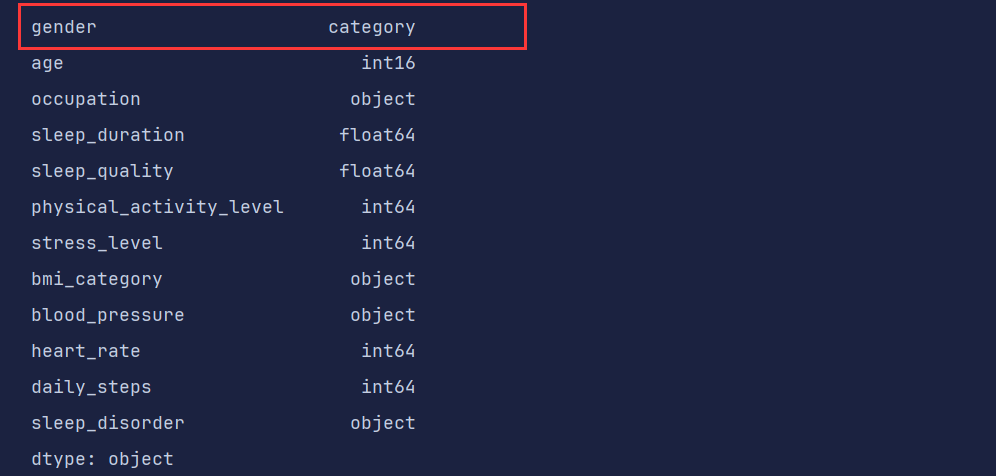 df['gender'] = df['gender'].astype('category') # 分类 类型 category