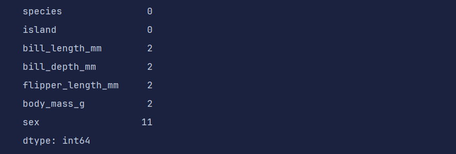 print(df.isna().sum(axis=1)) # 查看缺失值的个数 默认表示的是列索引 在sum内axis=1 表示计算行缺失值的个数
