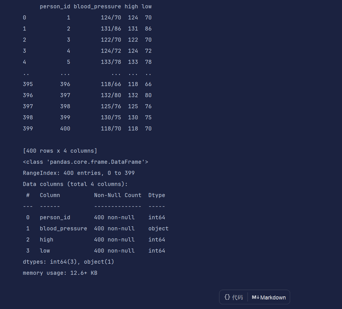 df[['high', 'low']] = df['blood_pressure'].str.split('/', expand=True)