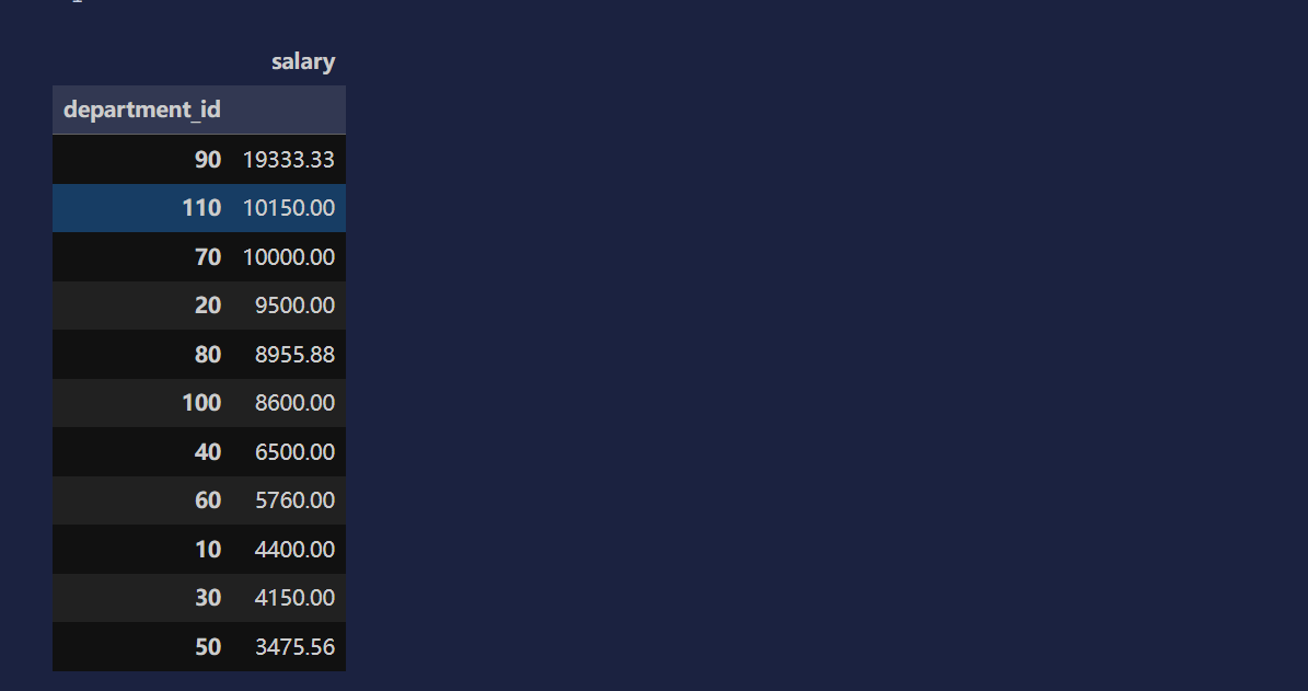 df3 = df.groupby(['department_id', 'job_id'])[['salary']].mean().round(1)