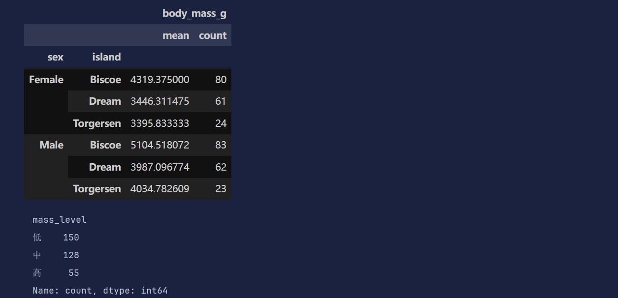 df['mass_level'] = pd.cut(df['body_mass_g'], bins=3, labels=labels)