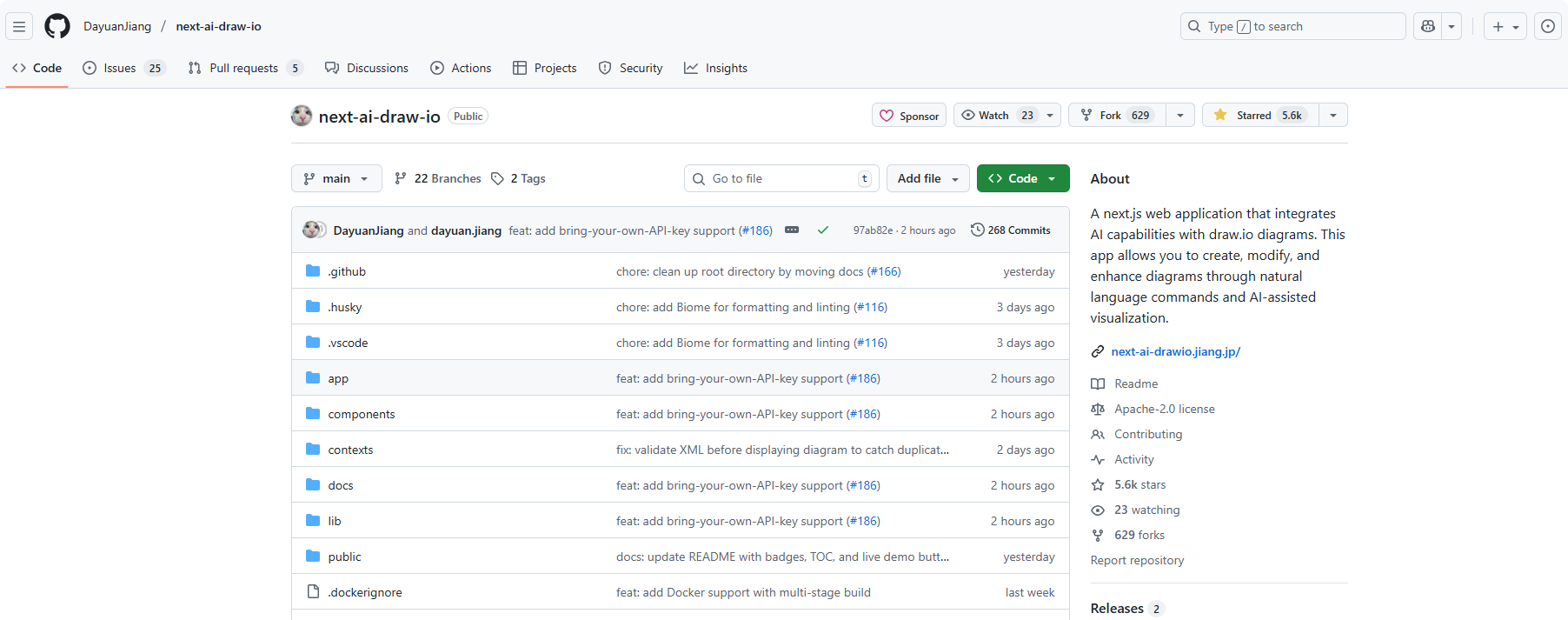 在AI技术重塑应用格局的时代,智能图表绘制工具正逐渐成为技术文档编写、系统设计与团队协作中不可或缺的利器。过去我常使用 draw.io 制作图表,而最近在 GitHub 上发现了一个为 draw.io 集成 AI 能力的项目------这无疑是为这款工具插上了智能的翅膀。今天,就让我们一起来了解这个令人期待的项目。