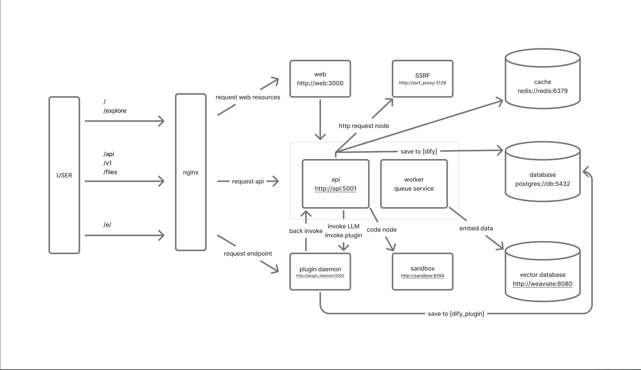 - 作用:核心API服务,处理来自nginx的API请求。它与数据库、缓存、插件守护进程和沙箱服务交互。