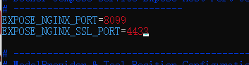 考虑到端口占用的问题,如果需要修改dify可视化界面端口,需要调整相关配置项。将变量EXPOSE_NGINX_PORT修改为新的可视化界面端口。