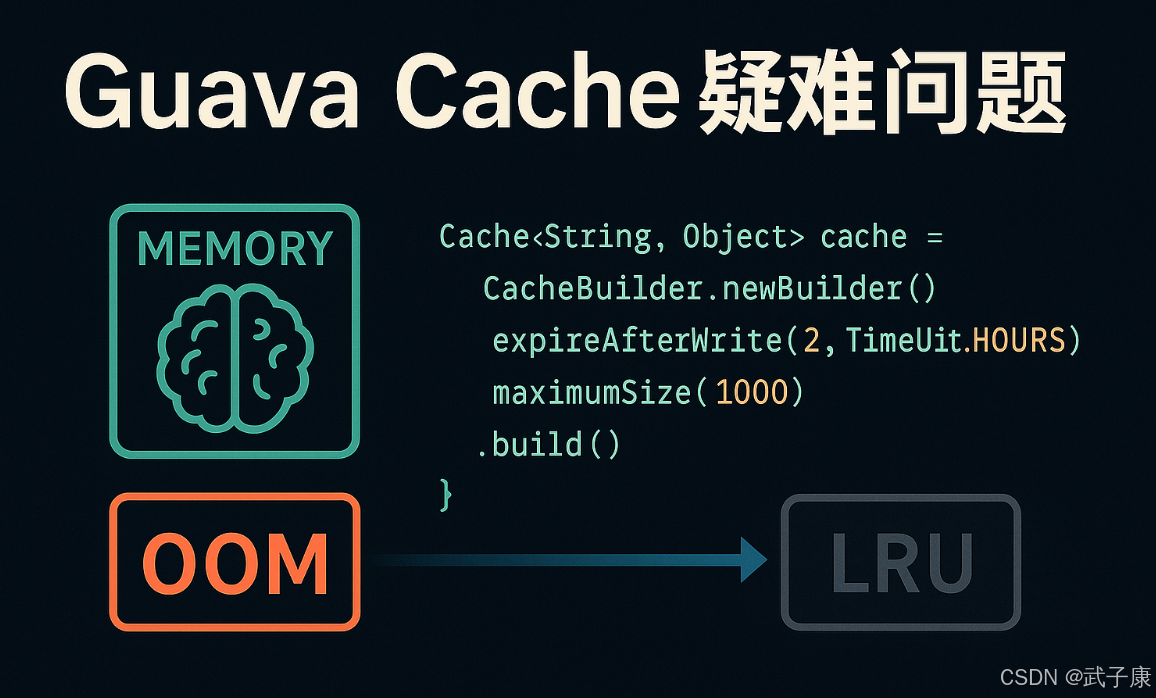 | 堆内存持续上涨直至 OOM,堆 dump 中 Guava Cache 对象占比极高 | 缓存永不过期或过期时间极长;未配置 maximumSize 或容量设置极大 | 使用堆分析工具查看 com.google.common.cache 相关对象;结合 cache.size() 观察条目数变化为所有缓存配置合理的 expireAfterWrite/expireAfterAccess 和 maximumSize;大对象场景配合 weakValues |