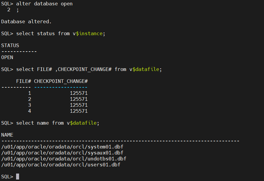 检查三大文件(参数文件、控制文件、在线日志文件),检查数据库一致性