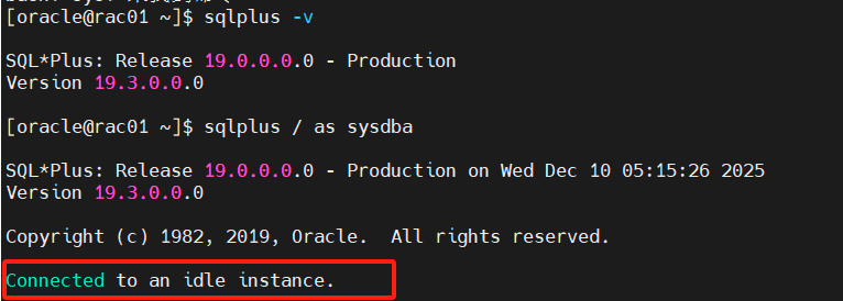 使用sys / as sysdba进入Oracle数据库中的连接方式。此时未连接任何实例。
