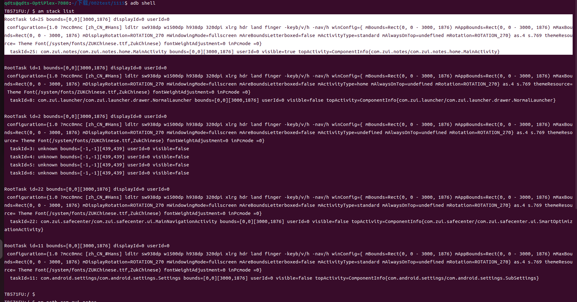 adb shell am stack list 是一个用于调试 Android 系统 Activity 管理的命令,它会输出当前系统中所有 Activity 栈(Stack)和任务(Task)的详细信息。这些信息对于分析应用启动、多任务切换和界面布局行为非常有用