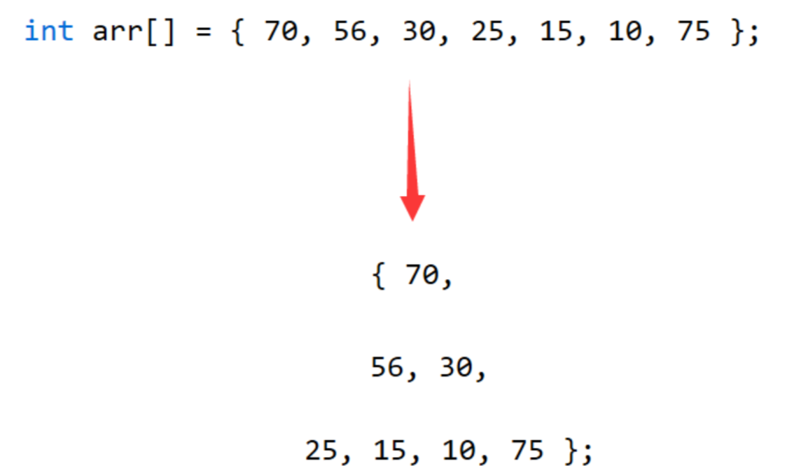 int arr[ ] = {70, 56, 30, 25, 15, 10, 75};