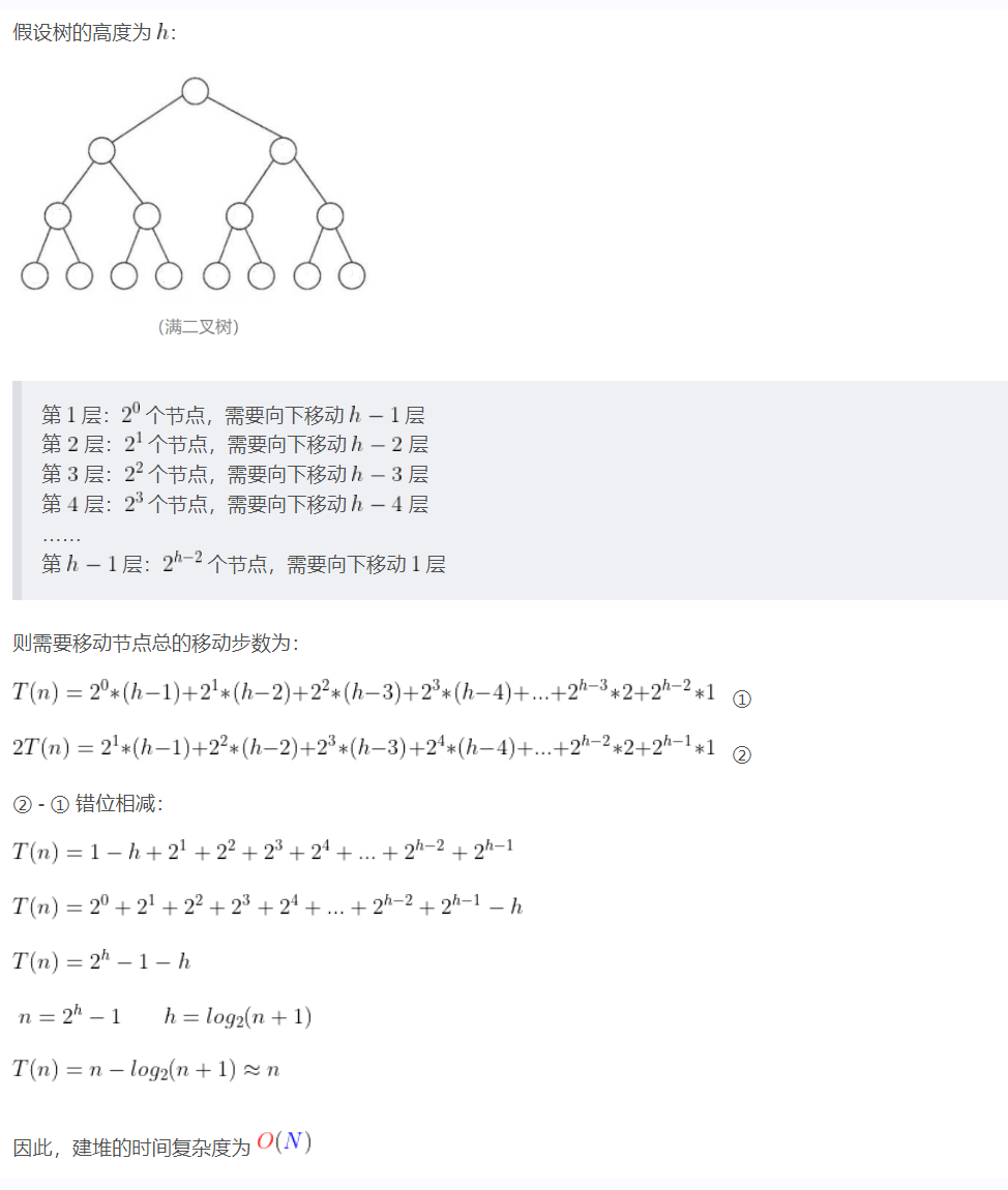 因为堆是完全二叉树,而满二叉树也是完全二叉树。此处为了简化,将采用满二叉树来证明。