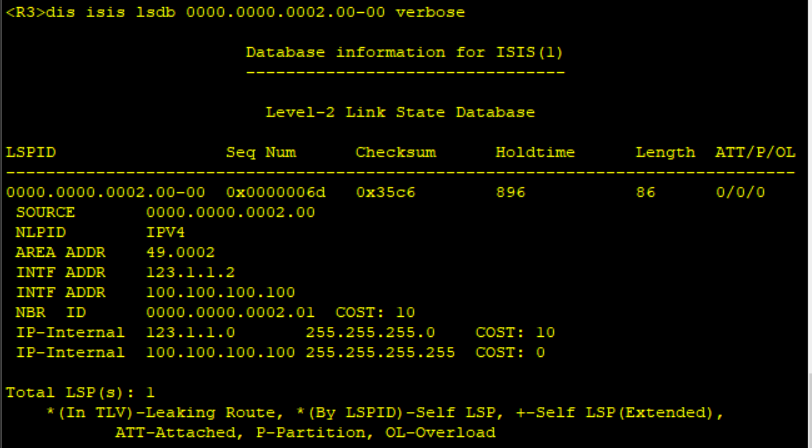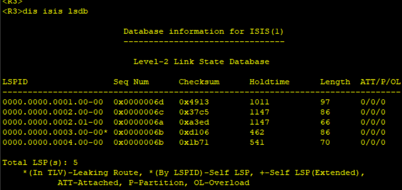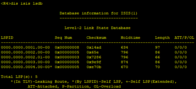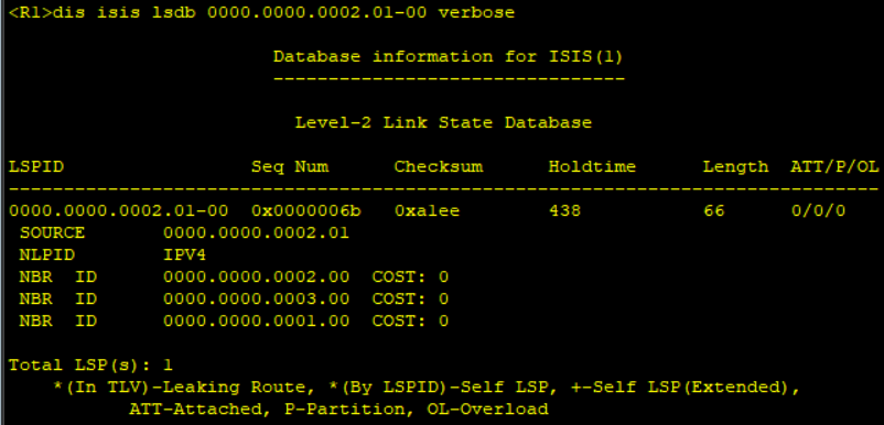 hold time: 一条LSP出生时hold time是1200s,每隔1s时间减去,直到减为0为止。(如果一台设备收到一条LSP中hold time为0的LSP,那么代表需要删除这个LSP)。 - 校验和