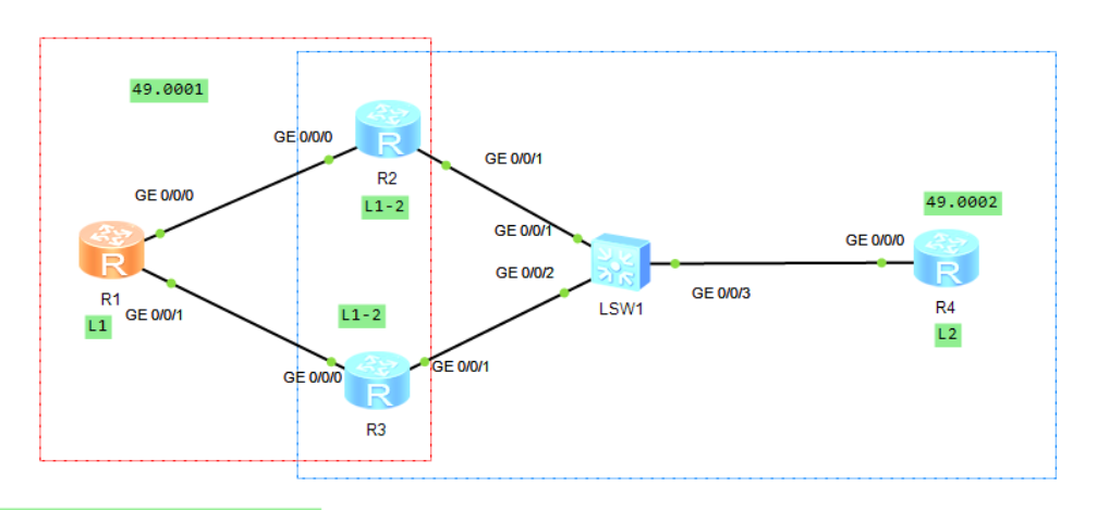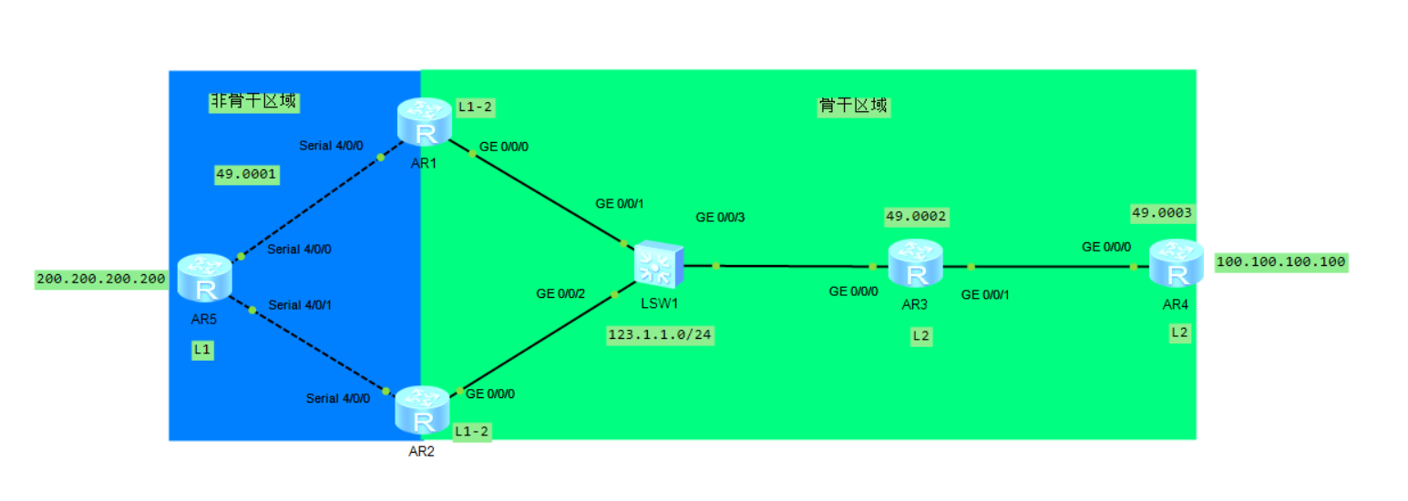 L1-2路由器和骨干区域直连,帮助非骨干区域访问骨干区域。