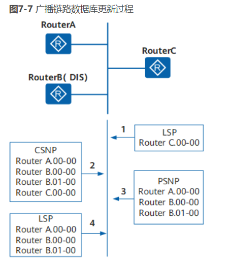 DIS收到该PSNP报文请求后向RouterC发送对应的LSP进行LSDB的同步
