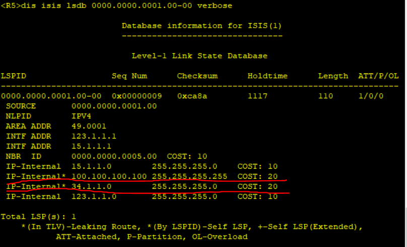 伪节点查看的方法一样,只是LSPID中对对应的两位是非00。