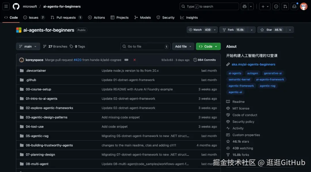 开源地址:https://github.com/microsoft/ai-agents-for-beginners